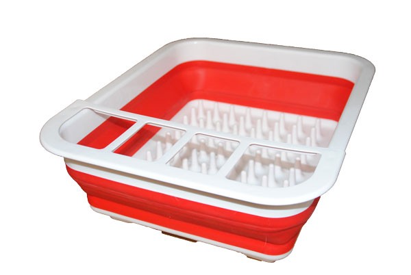 Escurreplatos plegable SILICONA/PLÁSTICO Colores: Gris, RojoDimensiones: 31,5 x 36,8 x 13 cmDimensiones Plegado: 31,5 x 36,8 x 5 cm